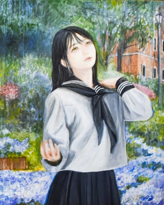 F3(273×220mm)。キャンバス。油彩 風に揺れる髪、やわらかな光の心地よさ。