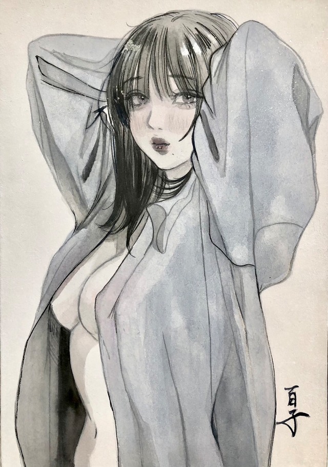 M3(273×160mm)。木製パネル/雲肌麻紙。岩絵具、水干絵具、色鉛筆、アクリルガッシュ。 女性が相手に抱く感情が、それが恋しさなのか、愛なのか、わからない余白を残した作品。