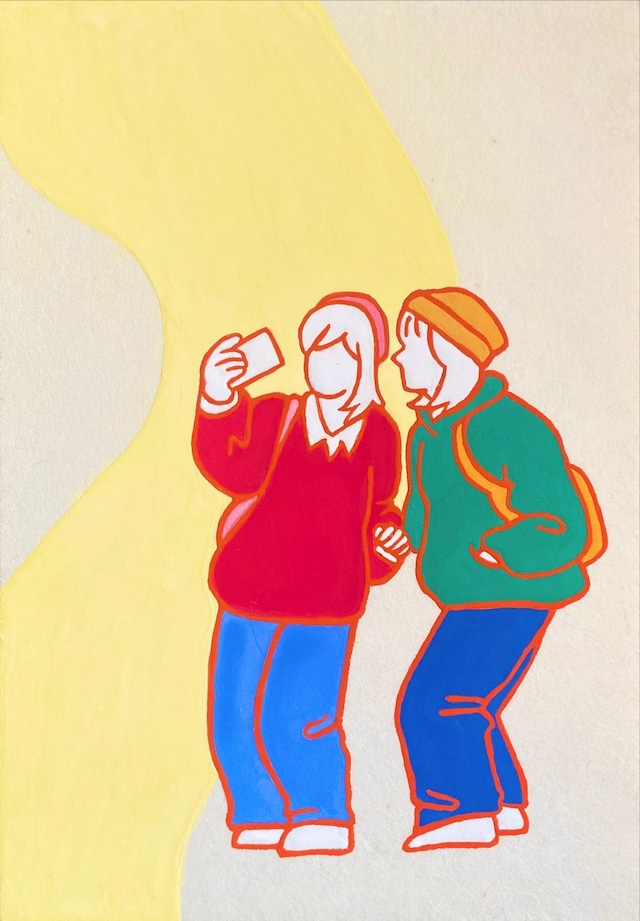 -     吉森百子『此処で…』 YOSHIMORI Momoko『Wait here.』 ¥33,000 P3(273×190mm)。木製パネル/雲肌麻紙。岩絵具 水干絵具 顔彩。
