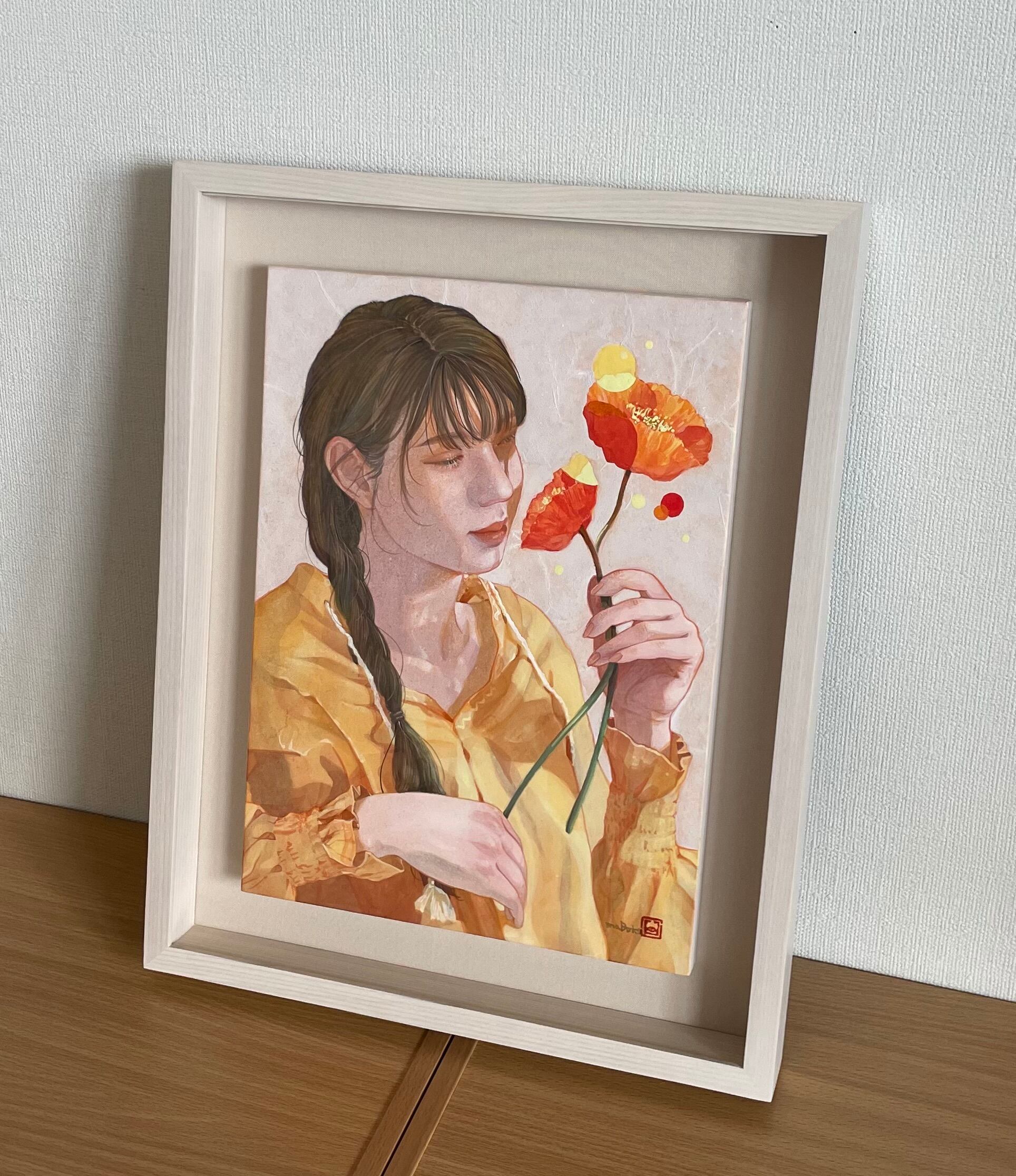 F4号(333×242mm)。木製パネル、アートクロス。日本画。