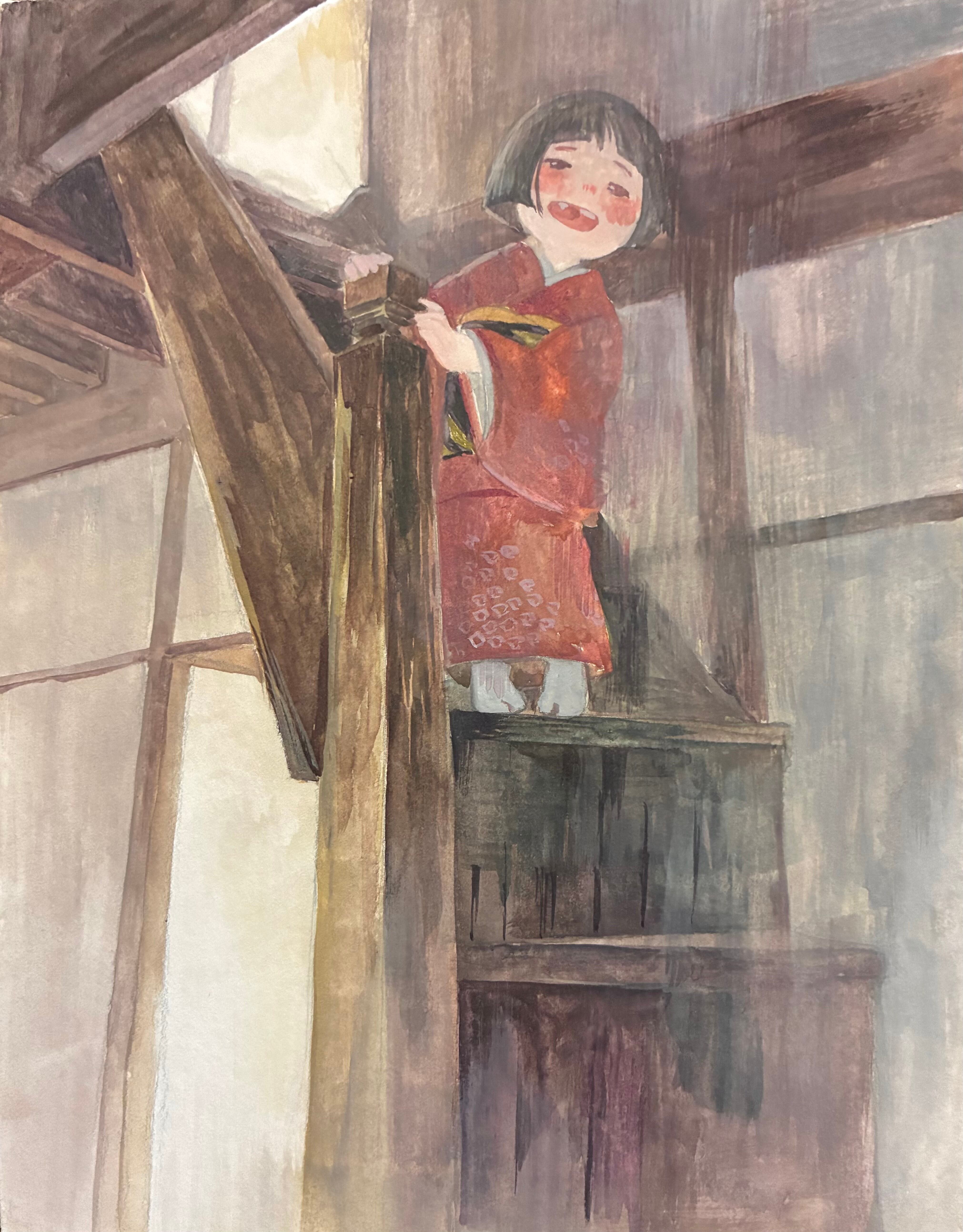 二階へと続く薄暗い階段には、いつも誰かがいる気がする。
