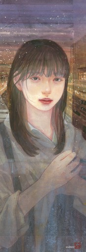WSM号(454×158mm)。木製パネル、雲肌麻紙。岩絵具 水干絵具 墨 典具帖紙。