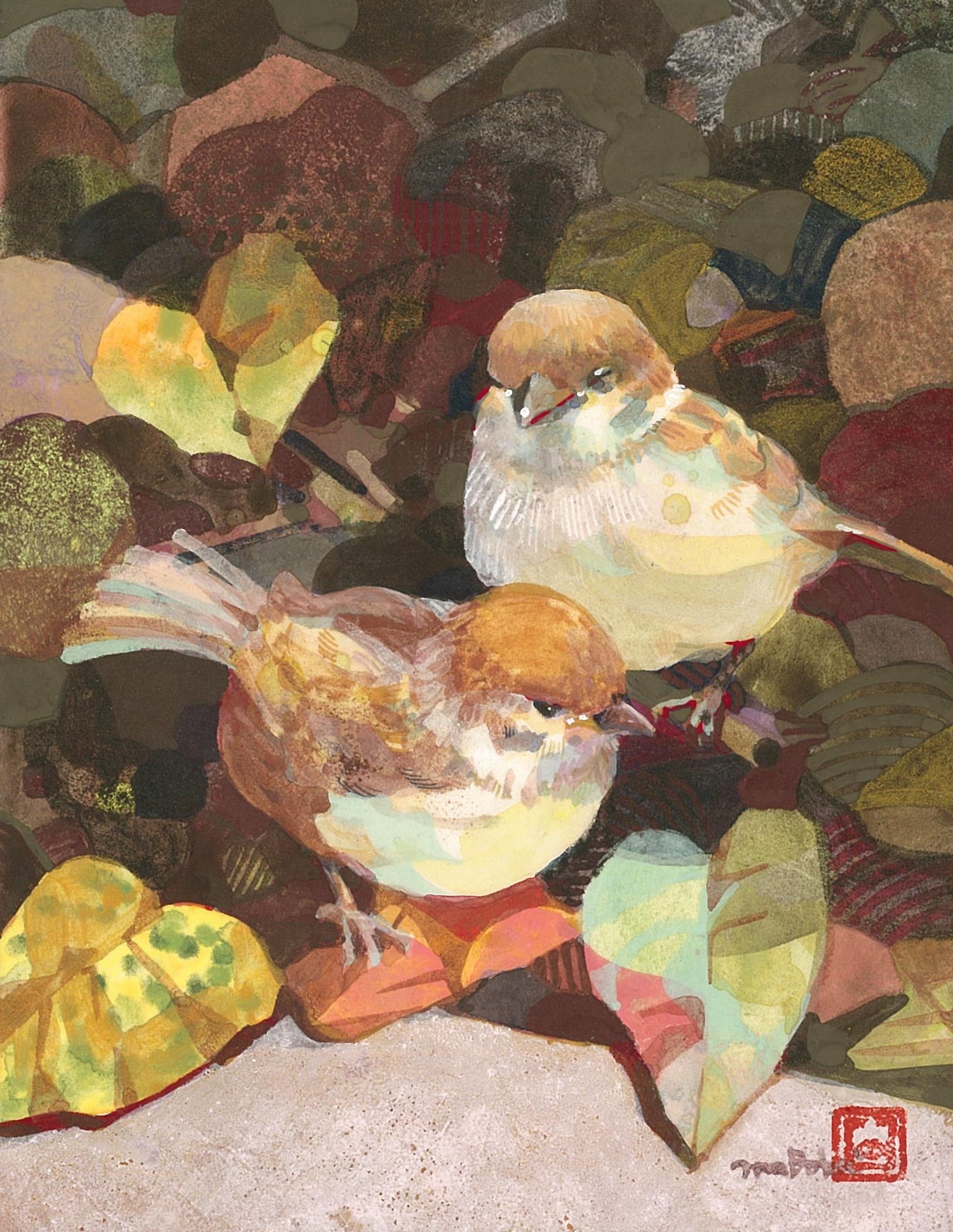 F0号(180×140mm)。木製パネル、雲肌麻紙。岩絵具 水干絵具 墨 典具帖紙。