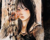 F3(273×220mm)。木製パネル 雲肌麻紙。日本画材 墨 木炭 パステル 箔。