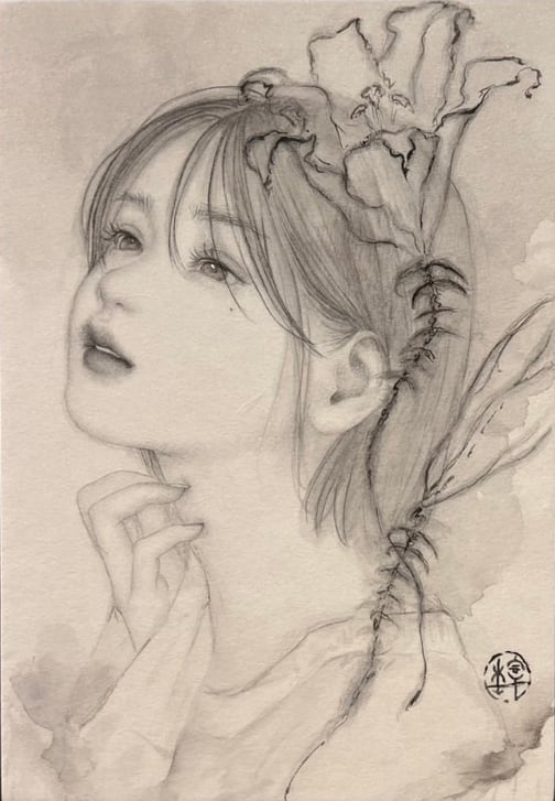 SM(227×158mm)。白麻紙。鉛筆、墨、あわび貝。