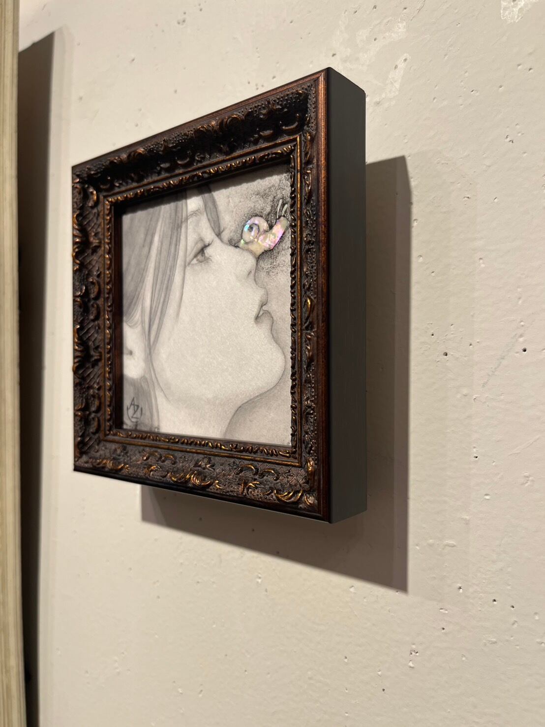 変形(100×100mm)。白麻紙。鉛筆、墨、あわび貝。