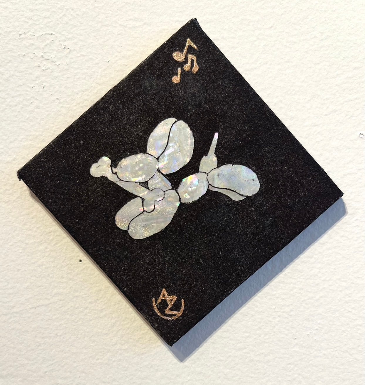 変形(75×75mm)。白麻紙。鉛筆、墨、あわび貝。